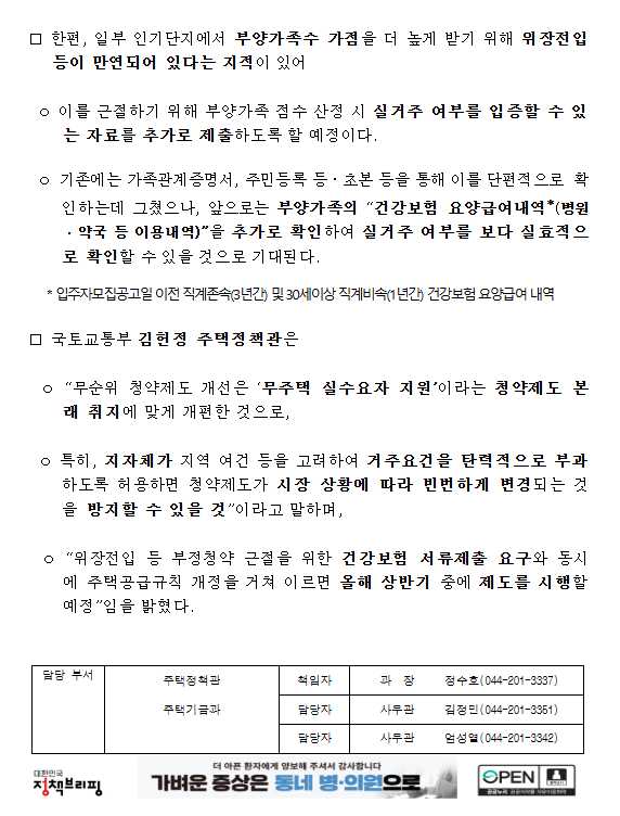 - 부정 청약 방지: 위장전입 등 부정행위를 막기 위한 검증 절차 강화.