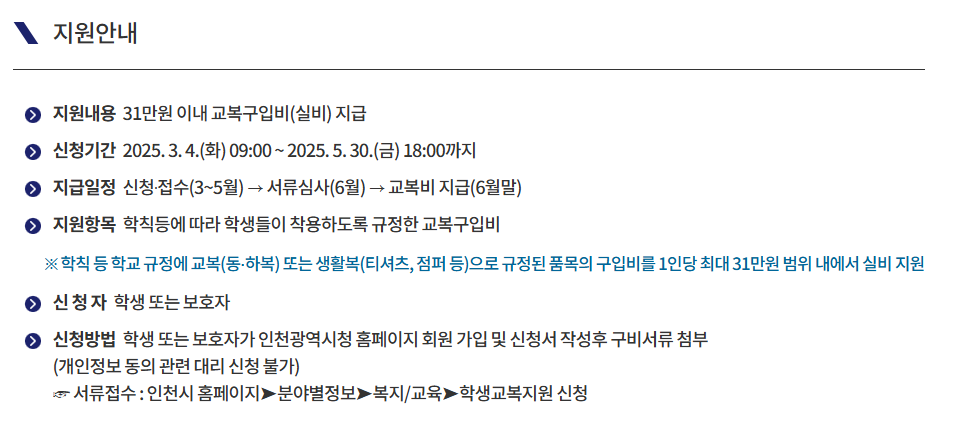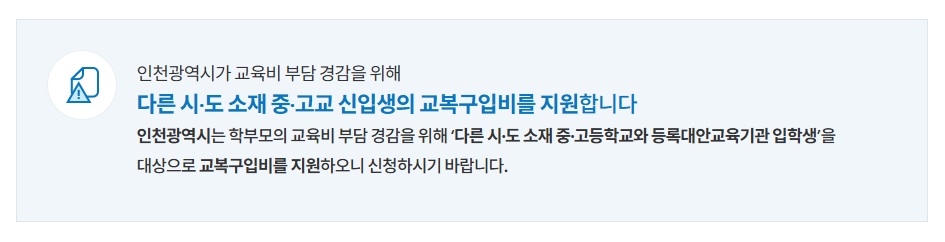 인천시, 타 시·도 중·고교 신입생 교복구입비 지원! 모든 정보 총정리