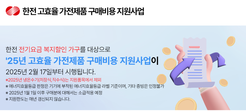- 신청 방법: 한전 고효율가전 홈페이지(바로가기)에서 온라인 신청.
